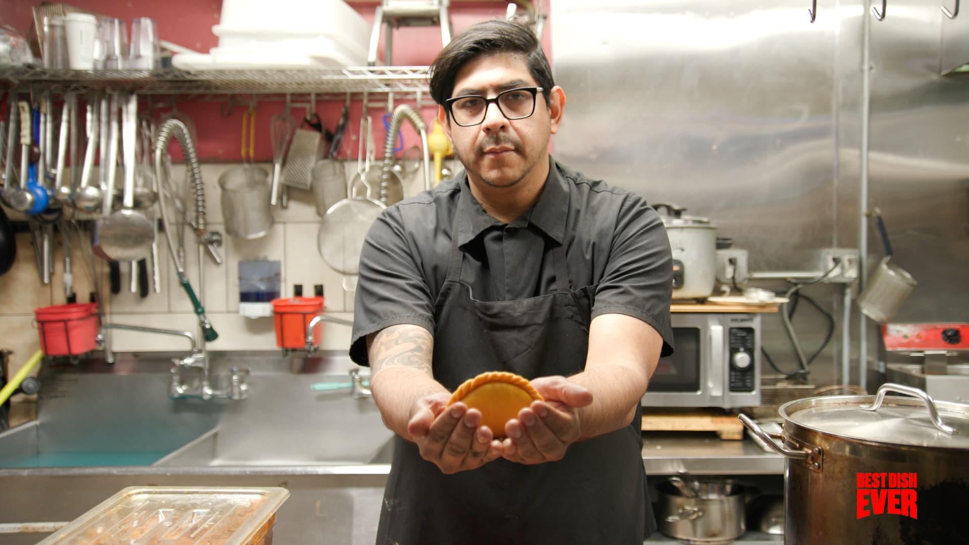 So, how do you eat a salteña the right way? Alex, one of the other Oropeza brothers, shares his technique: “Take your little napkin around it. Do a little shake … You want the filling to mix … when you shake it, you hear the juiciness.”